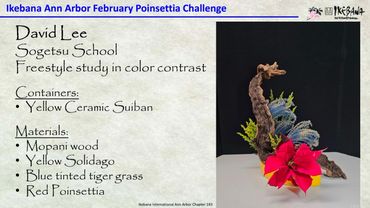 Lidia described how they grow, how to condition and how these special blooms can elevate your art. Lidia identified each variety giving you the opportunity to seek out individual cultivars. We saw Mexico, Ohara and the dazzling poinsettia at their very best!