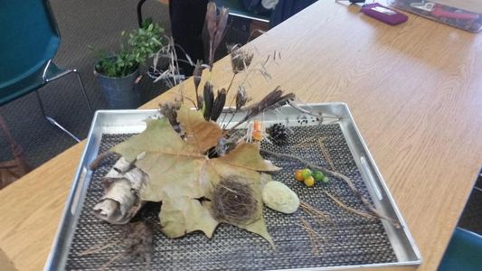 Our February Challenge was inspired by the demonstration we watched by Satsuski Palter from the Ohara School. Arrangement styles she demonstrated included Rimpa (similar to a painting often done in more than one low container.); Realistic Landscape; Hana Kanade (features three tall materials that cross (but do not touch with low materials surrounding them); and a morimono (made with any natural materials that are unique and interesting (often not flowers) and are arranged on a flat board or tray. Thank you to all who shared their beautiful and inspiring arrangements with us! This particular arrangement is a morimono created by Lyn Laufenberg (See more in our photo gallery).